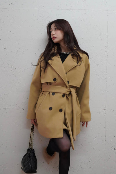Wool touch 2Way Belted Short Coat