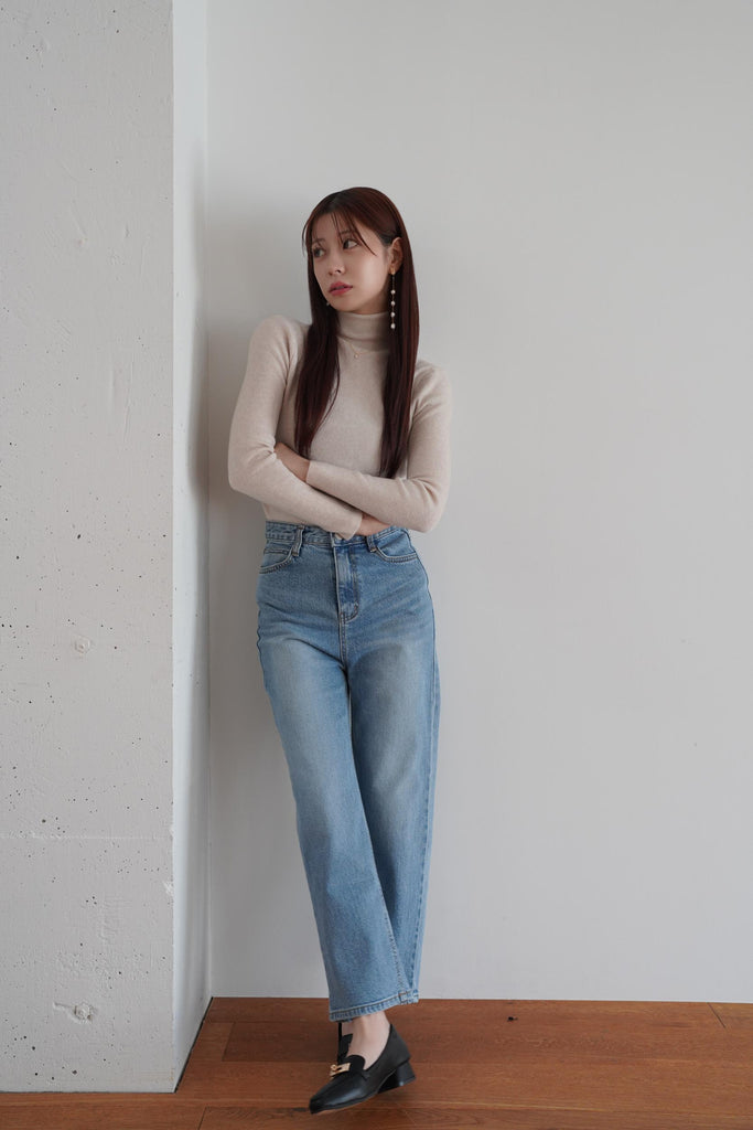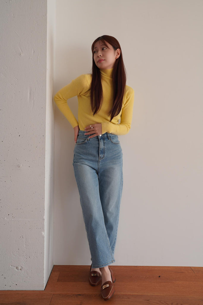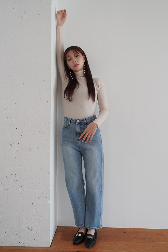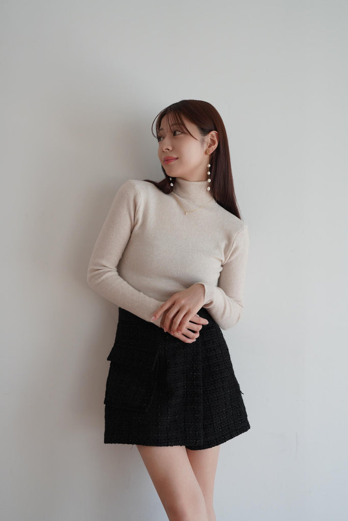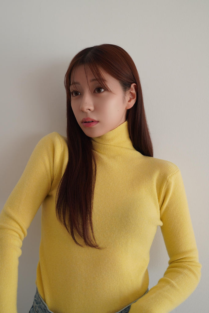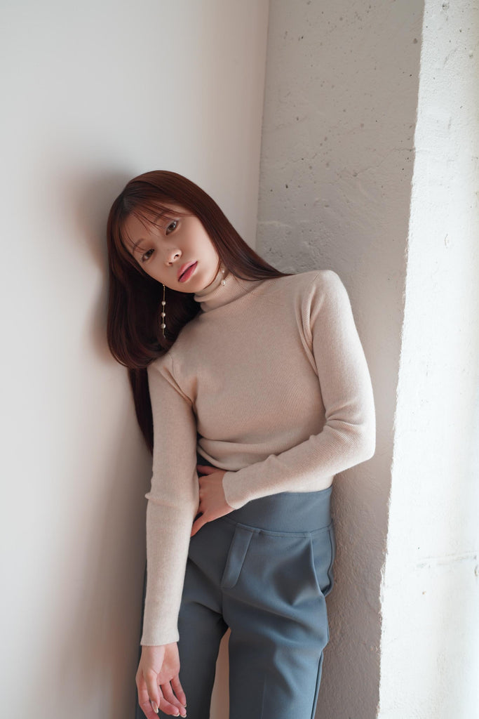 ・細身のニットなので、ワイドボトムスとも相性抜群