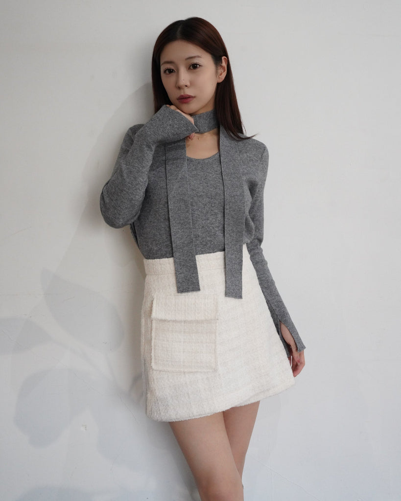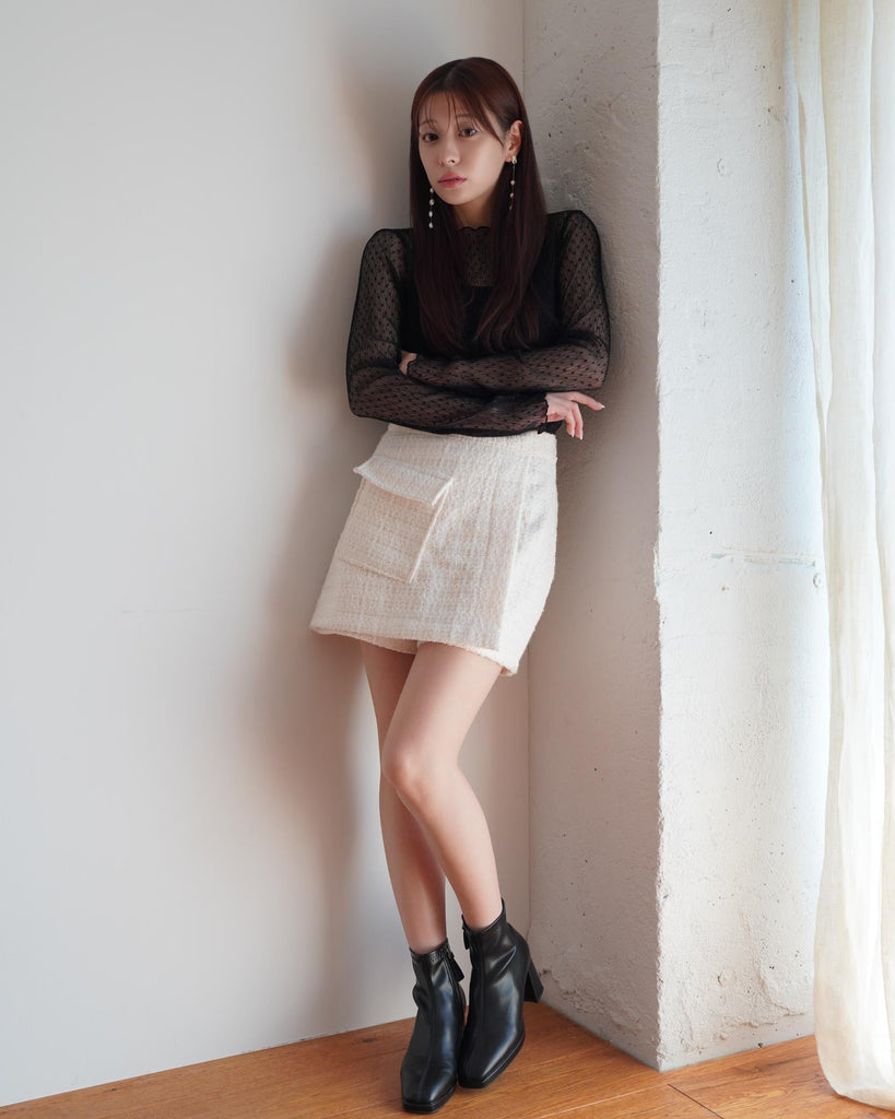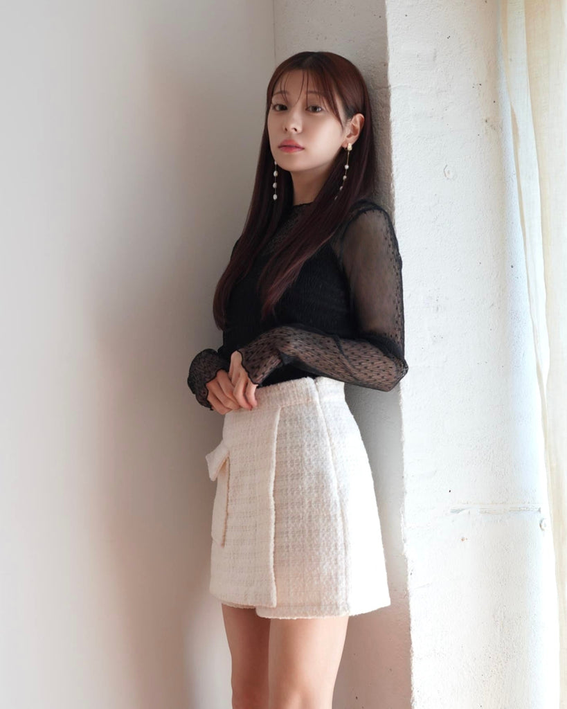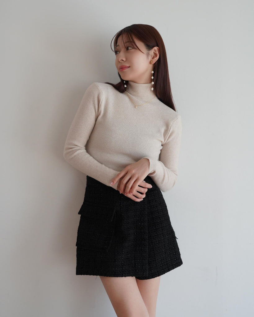 高品質なツイード素材を使ったミニスカート風のショートパンツ。