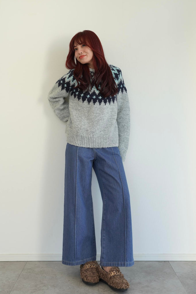 ・ハイウエスト設計なので、低身長さんがバランス履けるワイドデニムです