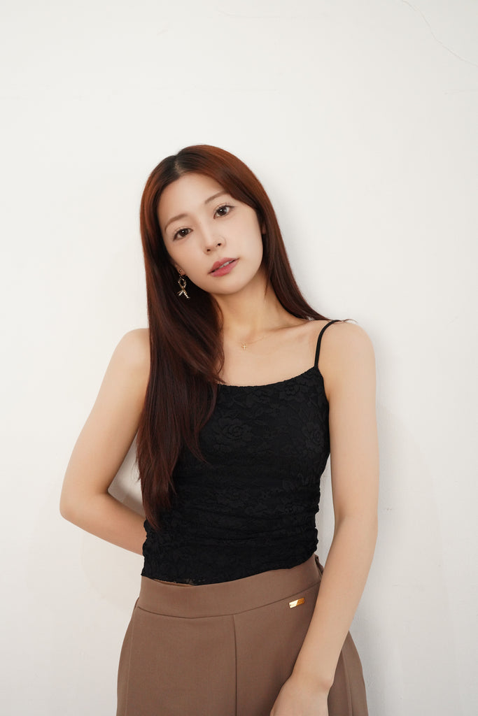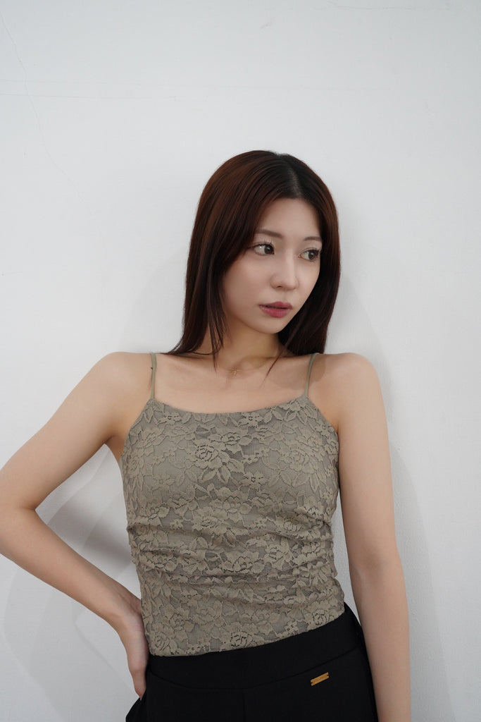 繊細なレースと、すっきりとしたラインが女性らしいカップ付きキャミソール。