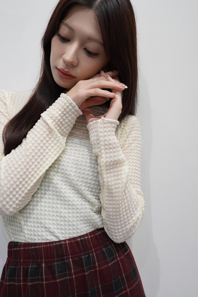 1枚でも重ね着アイテムとしても使えるシアー素材のトップスを低身長さんサイズに。