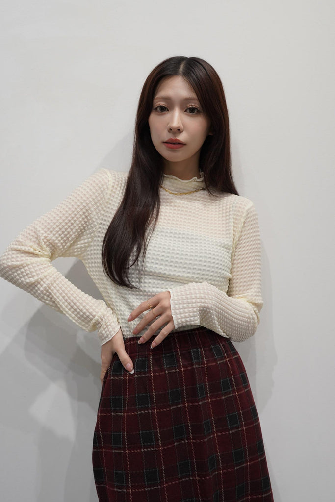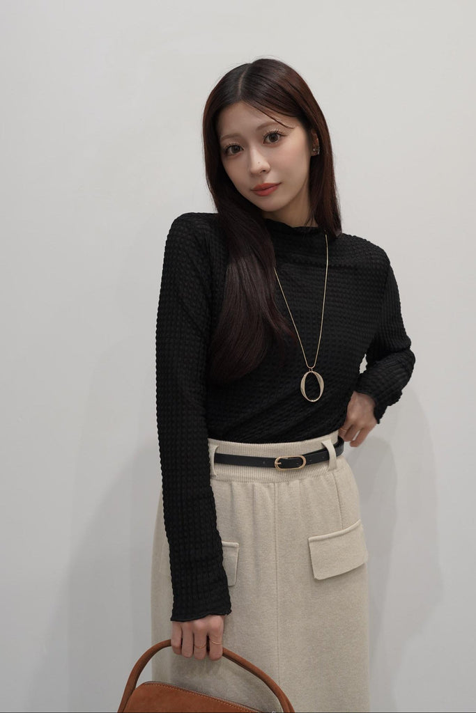 エンボス加工で仕上げることによって、体のラインを拾いにくく仕上げました。