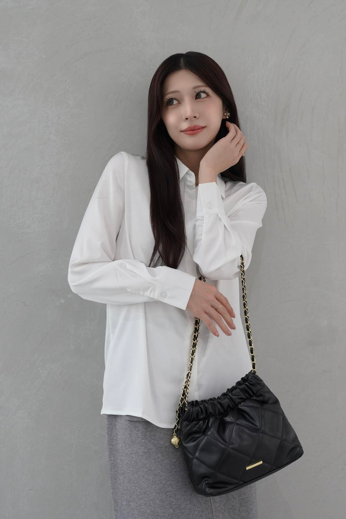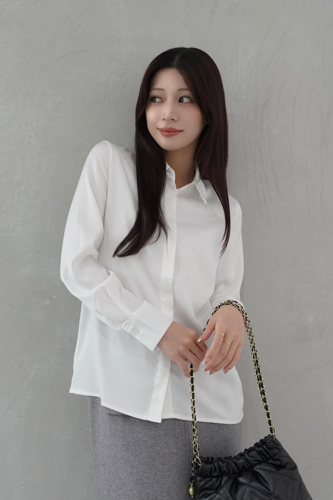 セーターやカーディガンのインナーとして綺麗めなスタイリングが完成。