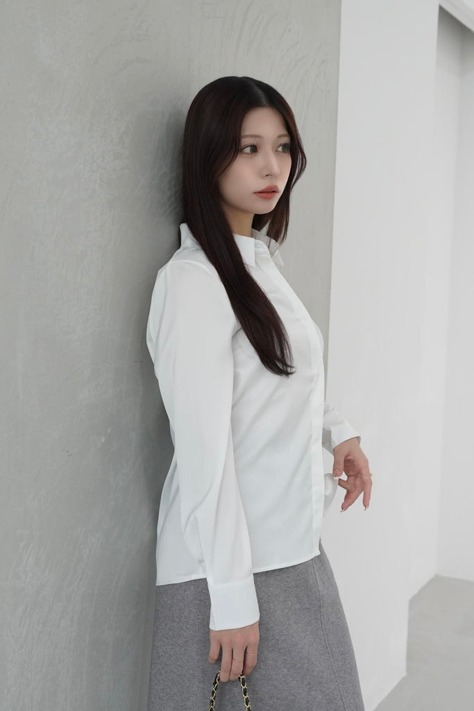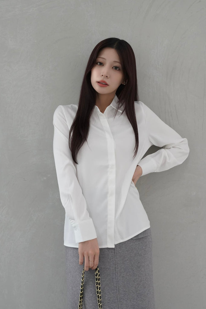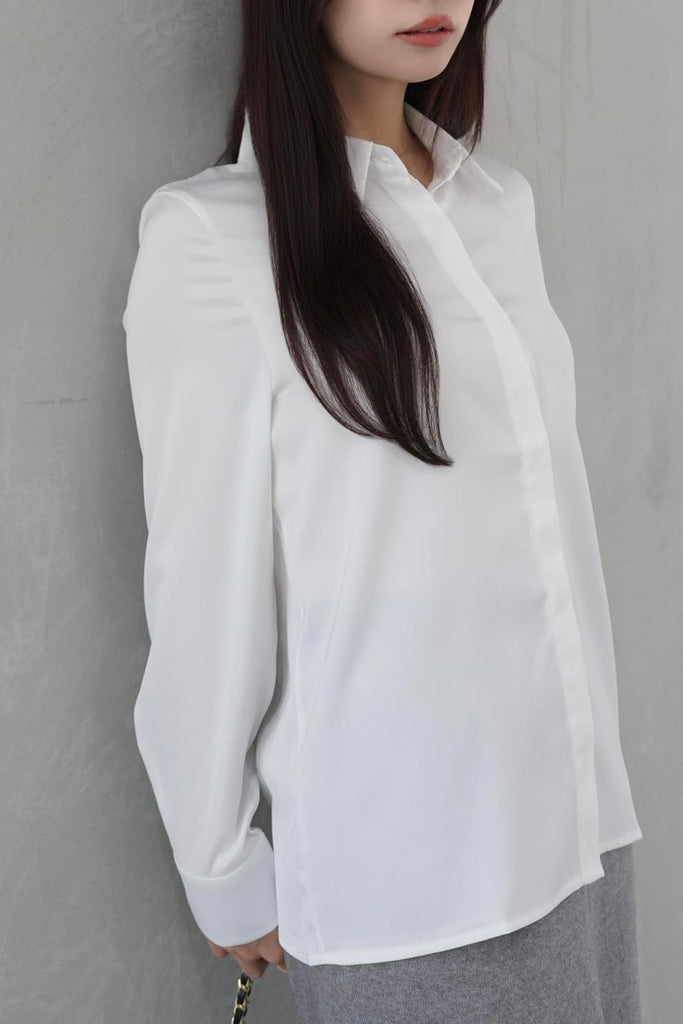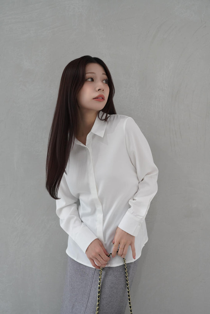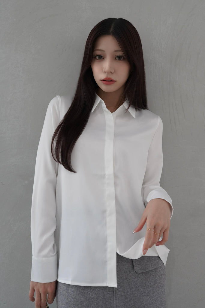 比翼仕立てでフロントをすっきりと見せ、シンプルながら洗練された印象に。