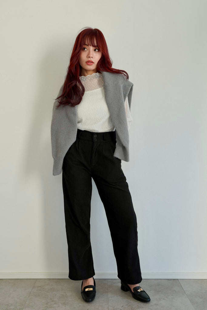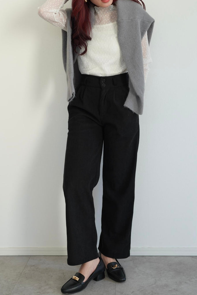 ・ウエストはダブルボタン仕様で、トップスをインしたときもさりげないポイントに。