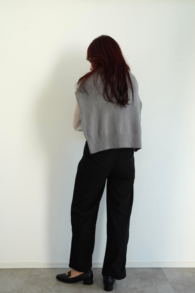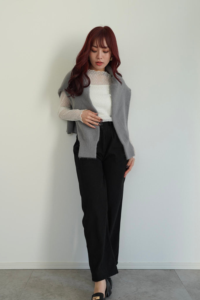 ・きめ細かなコーディロイ生地が、カジュアルになりすぎず大人っぽい印象に。